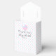 Ajoutez un ballotin baby shower chic et fantaisiste à votre journée spéciale. Pneuka rose et bleu motif arrière - plan avec une poussette rose et bleue ou avec les mots "merci". Votre nom et votre date de baby shower. Personnalisez cette jolie petite boîte de tente avec votre propre texte. Ajoutez un ruban correspondant. Ajouter les produits correspondants. Visitez mon magasin "La princesse hongroise" à l'adresse zazzle.com/hungaricanprincess*. Regardez dans ma catégorie de service "Oh Baby". Collection de Baby showers Pois rose et bleu" Félicitations!