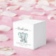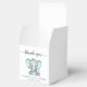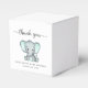 Des boîtes-cadeaux pour votre baby shower "merci" et "Une petite arachide douce est en route", toutes neutres, dans un mélange de typographie gris mou et d'un script élégant avec des cils et une aquarelle verte à la menthe pastel d'un bébé éléphant. Personnalisez le nom et la date de la douche de la future mère dans une simple typographie grise.