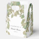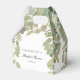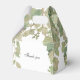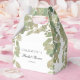 Boîte à cadeaux de baby shower élégante avec un design de feuille de eucalyptus doux dans des tons de vert sauge et beige sur un fond blanc immaculé. Personnalisable avec le nom de la mariée et la date de la fête, c'est idéal pour des célébrations élégantes et inspirées de la nature. Parfait pour des friandises, des petits cadeaux ou des surprises de remerciement pour vos invités.
