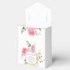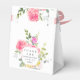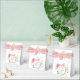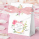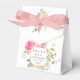 Beau baby shower floral merci ballotin personnalisé avec merci pour la célébration avec moi texte, nom et date, comprend un joli bouquet d'aquarelle rose sur un arrière - plan blanc.