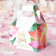 Baby shower moderne, lumineux et frais à thème tropical fleuri merci boîtes cadeaux avec typographie écriture moderne et or et magnifique aquarelle botanique verdure. N'hésitez pas à me contacter par l'intermédiaire du magasin pour toute question relative à la conception.