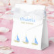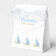 Ces ballotins de baby showers amusants disposent de voiliers nautiques avec voiles à rayures bleues et blanches. Personnalisez avec votre choix de texte spécial à l'avant et à l'arrière.