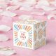Bienvenue à votre petit rayon de soleil avec ce Ballotin de Baby shower Neutre Sunshine Boho avec un adorable soleil jaune, or, orange, bleu et pêche aquarelle.