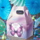 Jolies boîtes de remerciement pour votre prochaine baby shower avec un magnifique papillon violet pailleté