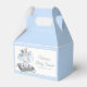 Ballotins de baby shower d'éléphant avec adorable petit prince éléphant sur un arrière - plan à rayures de pois bleu. Ces mignons ballotins de baby shower d'éléphant sont facilement customisés avec votre texte.