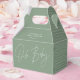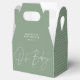 Baby shower simple élégant script moderne vert sauge avec design de ballotin motif géométrique. Conception idéale sans distinction de genre.