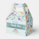Ce ballotin de baby shower mignon et fantaisiste de garçons bleu présente un motif de dessin animé dinosaure, avec un t-rex, un stégosaurus et des plantes jurassiques de jungle, et peut être personnalisé avec les noms du parent et un bref message de remerciement. Le ballotin personnalisé à thème dinosaure parfait pour vos baby showers de garçons couples co-ed.