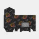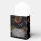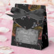 Admirez l'élégance des roses d'automne noirs, Crimson et violets, tout en appréciant la beauté du macabre et l'attrait de l'inconnu. Cette boîte fétiche de mariage enchanteresse est un motif floral foncé de roses antiques pourpres et d'oranges brûlées sur le noir. Le front a les noms des couples et la date mariage ornée de fleurs gothiques noires ornées. Ce ballotin est sombre et charmant et une faveur enchanteresse de votre mariage unique.