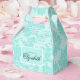 Turquoise damask party faveur boîtes. Cette belle collection turquoise de damas classique sera parfaite pour une célébration de jardin intérieur ou extérieur pour une mariage, douche nuptiale, baby shower ou une fête de style champêtre. Toute la collection est personnalisable. Bonne fête, applaudissements !