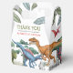 Anniversaire de enfant merci les boîtes de faveur de la fête avec un simple arrière - plan blanc clair, feuillage vert jungle, une collection de dinosaures aquarelle, et un modèle de remerciement qui est facile à customiser.