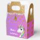 Faites de votre fête des faveurs inoubliables avec ce ballotin d'anniversaire unicorne personnalisé! Doté d'une licorne à couronne arc-en-ciel, d'une couronne fleurie, de coeurs dorés étincelants, de fleurs pastel, d'un château de contes de fées et d'un arrière - plan rêvé de dégradé violet à rose avec des accents de parties scintillant, ce coffret est parfait pour se remplir de petites gâteries, bonbons ou cadeaux. Idéal pour les anniversaires de licorne, les fêtes de princesse, les thèmes arc-en-ciel ou les célébrations de conte de fées, il élève votre décor de table tout en donnant aux invités un souvenir magique à ramener à la maison. Personnalisez avec le nom ou le message de votre enfant pour une touche finale unique.
