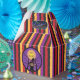Un ballotin d'Halloween mignon et coloré pour les enfants avec des rayures rouge, orange, violet et noir et une adorable sorcière. Les mots lisent "Happy Halloween" mais vous pouvez facilement le modifier et le remplacer par votre propre texte. Recherchez nos serviettes en papier et nos plaques en papier assorties. © ArianeC Illustrations-Tous droits réservés