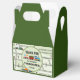 Un labyrinthe de dessins animés de voies ferroviaires avec trains, panneaux et signaux. Texte personnalisable avec un merci" apparaît sur l'avant et l'arrière de cette boîte décorée de train et de piste. Parfait pour une fête d'anniversaire sur le thème du train ! Les amoureux de votre petit train adoreront ramener leurs bonbons dans cette boîte !