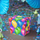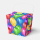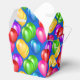 La boîte de fête est affichée en couleur arrière - plan bleue avec une impression colorée de ballons d'anniversaire festif. Customisez cet objet ou achetez tel quel.