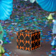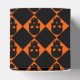 Motif reprenant et dynamique de diamants noirs et orange avec des crânes noirs éffrayants. Idéal pour une fête d'Halloween.