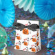 Boîte de fête en blanc avec un fantôme d'Halloween et imprimé citrouille. Customisez cet objet ou achetez tel quel. Conseil : Ajoutez un joli ruban.
