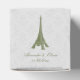 Personnalisez une boîte unique pour les invités avec ce Ballotin Mariage damassé Tour Eiffel Vert. Le design ballotin présente la Tour Eiffel contre un délicat arrière - plan en dentelle damassée. Personnalisez avec les noms du marié et de la mariée avec la date du mariage. Papier à lettres mariage supplémentaire disponible avec cette conception aussi.