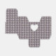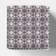 Blocs de courtepointe en motif "spool" violet et blanc. Huit bobines tournent autour d'un centre de violet foncé. Un imprimé de fleurs violettes est le "fil" de la bobine. Sans cadre pour chaque bloc, le motif donne un effet kaléidoscope.