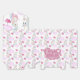 Le design est composé d'un motif répétitif de têtes de licorne majestueuses, aux formes pastel fluides, dans les tons rose, bleu et jaune. Les licornes ont des yeux expressifs et des cornes dorées, ajoutant à leur charme magique. Autour d'eux sont roses douces, des nuages tourbillonnant et des paires de coeurs roses brillants, le tout dressé contre un arrière - plan blanc. La combinaison crée un rêve.