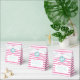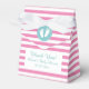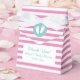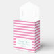Bande rose et blanche baby shower fête boîte de faveur. Merci personnalisé pour le message à venir. Impression de lignes mignonnes avec typographie de script élégante et d'adorables empreintes de bébé Couleur arrière - plan personnalisable. Conception de pieds bébé pour la fête de la douche bébé. Fille Turquoise bleu et rose couleurs pour nouveau bébé / nouveau-né enfant. Ballotins en forme de tente. Des idées de babyshower tendance.