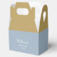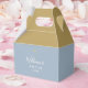 Élégante boîte à cadeaux de baptême ou de christening en or et bleu poussiéreux avec une typographie chic. Vous pouvez personnaliser avec votre propre message de remerciement au verso. Un moyen parfait de dire merci à vos invités ! Conçu par Thisisnotme©