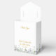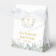 Élégante boîte de baptême ou de parrainage à motif floral avec une belle guirlande de laurier et une croix dorée, personnalisée avec le nom et la date spéciale en typographie dorée chic. Vous pouvez également personnaliser avec votre propre message de remerciement sous le couvercle. Un moyen parfait de dire merci à vos invités ! Conçu par Thisisnotme©
