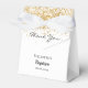 Un élégant arrière - plan blanc avec parties scintillant fauxgold. Avec le texte : Baptême et Merci écrits avec un script de style moderne écrit à la main. Personnalisez et ajoutez un nom et une date.
