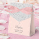 Élégante boîte de baptême ou de cadeau de remerciement de christening comportant de la poussière d'étoiles argentées avec un nom personnalisé et une date spéciale dans une typographie chic sur un fond rose poudré. Vous pouvez également personnaliser avec votre propre message de remerciement sous le couvercle. Un moyen parfait de dire merci à vos invités ! Conçu par Thisisnotme©