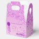 The birthday favor box features gleaming Falling Pink Glitter on Pink gradient with Bright Stars. The Gold and Pink Glitter
