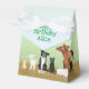 Célébrez l'anniversaire d'un enfant dans le style avec cette jolie boîte de réception pour animaux de ferme amis tente. Avec un âne, une oie, une poule et ses poussins, un bébé chèvre, un porcelet, un lapin, deux agneaux, un collie frontalier, un chat noir et une vache et son veau, la boîte peut être personnalisée comme vous le souhaitez.