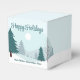 Un beau paysage hivernal avec des pins verts sarcelle et un sol enneigé sur une petite boîte de fête de fin d'année personnalisée. Personnalisez ces chocolats Joyeuses Fêtes pour vos clients ou employés d'entreprise.