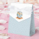 Joli ballotin bleu avec pois blancs. Sur le devant se trouve l'image d'un bébé oiseau qui coule d'un oeuf bleu. Illustré et dessiné par Patricia Alvarez.