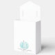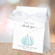 Jolie boîte de faveur bébé garçon douche avec "merci" en typographie gris simple et un script élégant avec des swashes et une aquarelle d'un citrouille bleu.