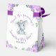Cute Purple Floral Girl éléphant bébé avec une belle couronne florale en violet vert et gris couleurs élégant baby shower papier ballotin personnalisable avec nom/date et message de remerciement.
