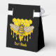 Abeille de miel avec des ailes ouvertes sur la ruche d'abeille et gouttes de miel. Couleur arrière - plan personnalisée. Texte personnalisé des deux côtés.