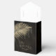 Optez pour un look glamour Old Hollywood en utilisant les pièces de cette suite mariage comme indiqué, avec des bijoux en cascade des feuilles de palmiers incrustés de diamants, ou supprimez les couches de bijoux pour un look légèrement plus conservateur. Cet ensemble présente des feuilles en or chatoyant contre un arrière - plan texturé de la couleur riche du café noir. Le ballotin mariage 'Love & Thanks' montré ici a une bordure de feuilles pétillants, une police serif élégante avec le nom de la mariée et le nom du marié et la date du mariage. Entrez facilement vos propres informations de mariage en utilisant le modèle fourni. Affichez le lien de collection sur cette page pour voir tous les éléments correspondants dans ce bel ensemble ou recherchez ID830 pour voir d'autres options de couleur pour cette conception.
