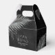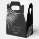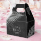 Optez pour un look éblouissant, éblouissant et glamour en utilisant les pièces de cette suite mariage comme indiqué, avec des bijoux en cascade des feuilles de palmiers incrustés de diamants ou supprimer les couches de bijoux pour un look un peu plus conservateur. Cet ensemble présente des feuilles argentés chatoyants et un arrière - plan texturé au charbon de bois foncé. Le ballotin mariage 'Love & Thanks' montré ici a une bordure de feuilles pétillants, une police serif élégante avec le nom de la mariée et le nom du marié et la date du mariage. Entrez facilement vos propres informations de mariage en utilisant le modèle fourni. Affichez le lien de collection sur cette page pour voir tous les éléments correspondants dans ce bel ensemble ou recherchez ID830 pour voir d'autres options de couleur pour cette conception.