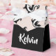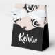 Add your name on this black and white skunks on rose pink background pattern design