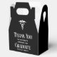 This modern personalized black medical school graduation party favor box features the college graduate name in elegant white script for the class of 2026. Customize with your university under the medical caduceus for great graduation gifts.
