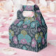 Ce ballotin présente des fleurs dans les tons violet, bleu et vert olive, entourées de frondes de fougères violettes muettes et de feuilles sur un arrière - plan bleu foncé.