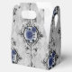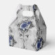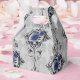 Boîte à rabat à motif damassé floral vintage étincelant avec des accents de bleu marine et d'argent.