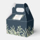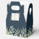 Une boîte de faveur de mariage élégante avec des feuilles aquarelles délicates sur un fond bleu marine profond encadrant vos noms et message de remerciement. Un moyen parfait de dire merci à vos invités ! Conçu par Thisisnotme©