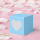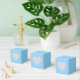 Boîte de faveur à motif de treillis avec des accents de bleu bébé et de faux or brillant pour compléter la collection ci-dessous.
