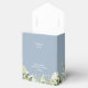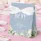 Un élégant contenant de faveur de fête de bébé c'est un garçon avec feuillage de verdure et typographie chic sur un fond bleu poussiéreux. Vous pouvez personnaliser avec votre propre message de remerciement sous le couvercle. Une façon parfaite de dire merci à vos invités ! Conçu par Thisisnotme©
