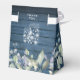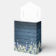 Une boîte rustique de mariage avec des feuilles délicats de sauge et d'aquarelle lilas, des lampes à cordes et des jarres de maçon sur un arrière - plan de panneaux de bois bleu. Vous pouvez personnaliser avec votre propre message de remerciement au contraire. Une façon parfaite de remercier vos invités ! Conçu par Thisisnotme©