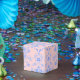 Ballotins Bleu sur Damas rose