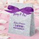 Pour une boîte de faveur blingy party, on ne peut pas battre ! Coordonné avec le Bling It On Silver Sparkles Purple Invitation.