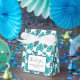 Ballotin moderne de mariage botanique bleu vert pour une plage ou une cérémonie d'été en plein air. Une destination tropicale idéale pour un mariage hawaïen. Un excellent moyen de remercier vos invités de réception.
