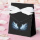 Light, artistique, blue angel wings on a black background. Angel wings.