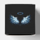 Light, artistique, blue angel wings on a black background. Angel wings.